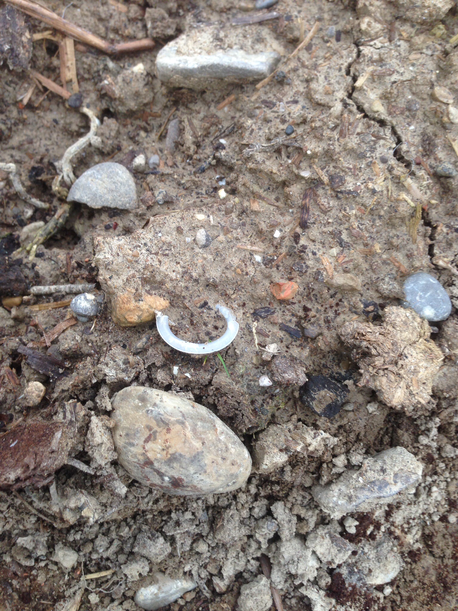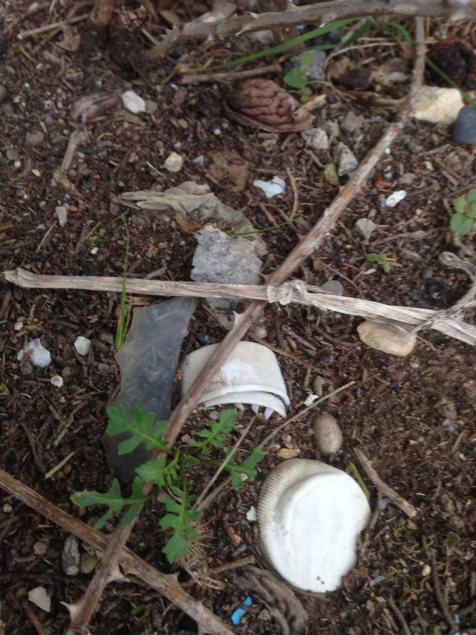 Ese terreno lo usaban de vertedero, no sabían apreciar el valor de ese lugar. Conforme han ido pasando los meses y los años han ido apareciendo cosas enterradas. Han aparecido cosas de todo tipo, algunas que podría entender encontrármelas allí tiradas, como los tapes de plástico de las botellas o las chapas de los botellines de cerveza, que pueden estar allí por que se hubieran hecho comidas o meriendas allí, pero otras cosas que me he encontrado es de cerdos.