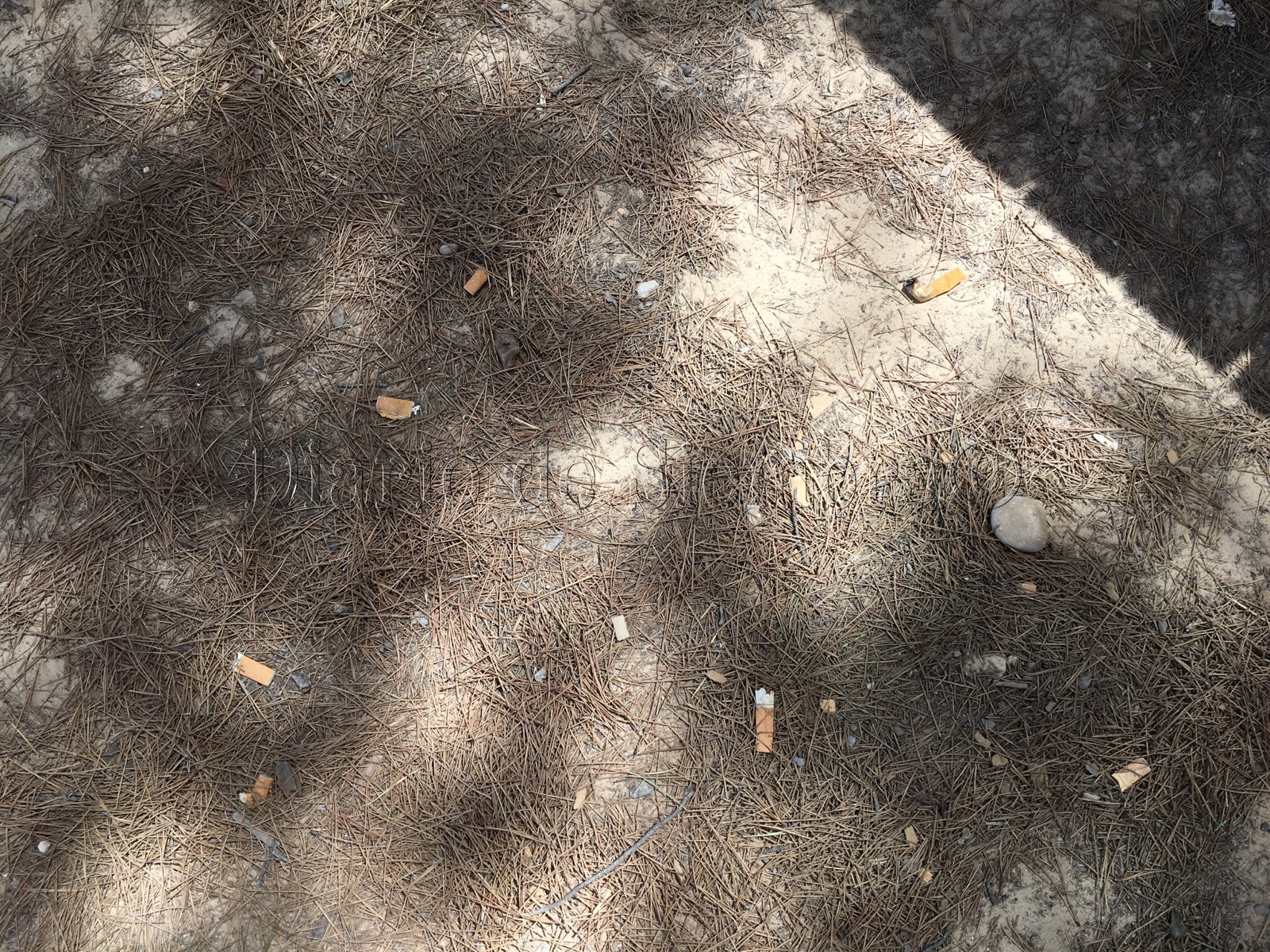 Estar en una zona de mesas en los pinares no significa que podamos tirar las colillas al suelo, una colilla tarda unos 10 años en degradarse. El filtro de los cigarrillos es de acetato de celulosa que combinado con los componentes del cigarrillo hace que tarde tanto en degradarse.