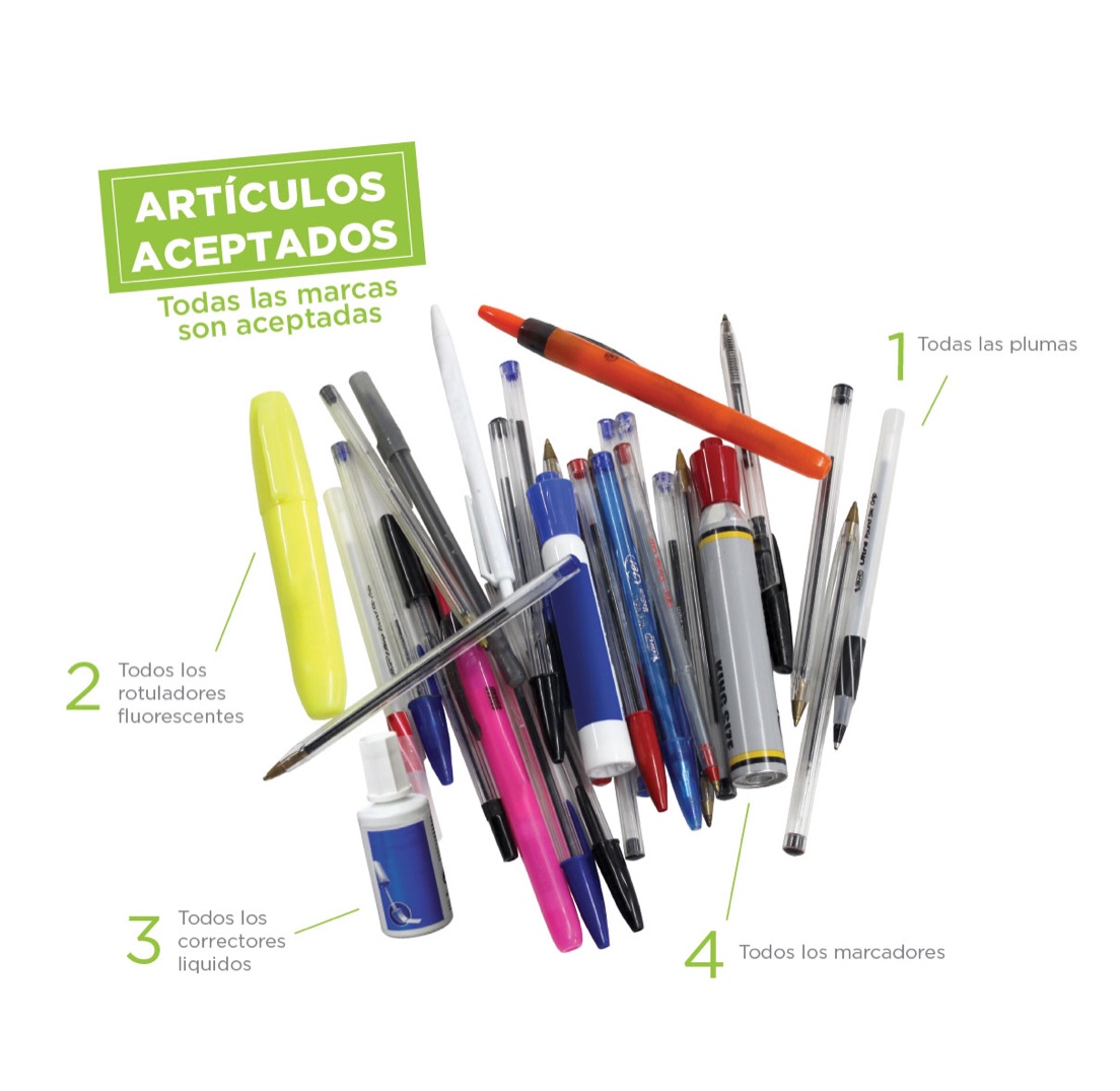 Así que decidimos colaborar con ellos y ayudar al reciclaje, apoyando y uniéndonos a sus programas de reciclaje que estén a nuestro alcance. En este caso y para empezar la andadura nos unimos a su programa de reciclaje de instrumentos de escritura, y ayudar así al reciclaje de estos residuos.