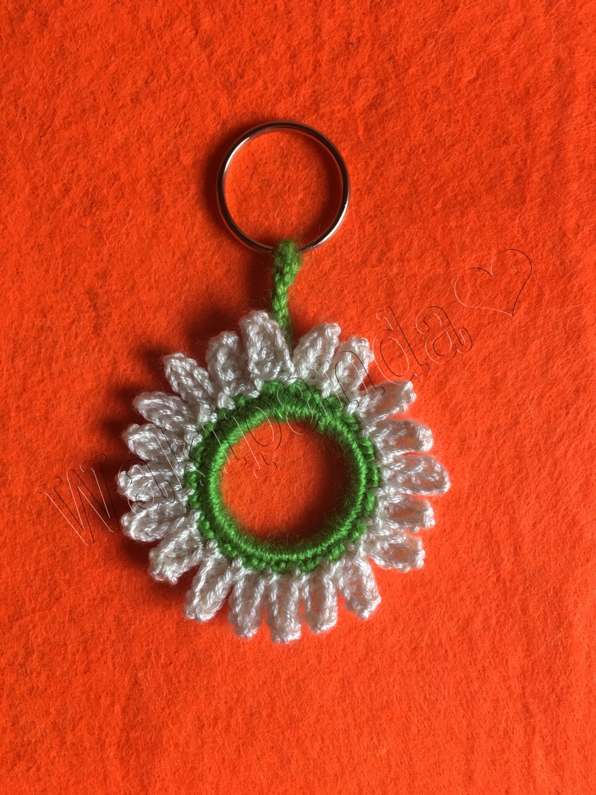 Con el aro del tapón de una una botella de plástico y un hilo, tenemos llaveros tan originales como esta margarita.