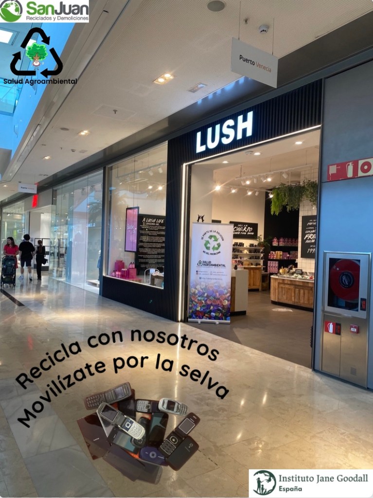 La tienda Lush por su parte, nos ha regalado colaborar con nosotros siendo punto de recogida para teléfonos móviles para la campaña “Movilízate por la selva”.